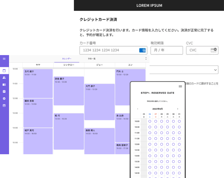 様々な業種やニーズを想定し、顧客管理も決済もできる汎用性の高い予約システムSmoothBookingを搭載。また、BiNDカートを使えばオンラインショップも手軽に作成できます。