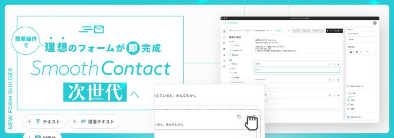 今年、SmoothContactは大規模アップデートを実施し、多彩な新機能が搭載されました。 個人利用から企業 … 続きを読む ノーコードで作れるWebフォーム SmoothContact|新機能とリニューアルへの想いをUIデザイナーが解説