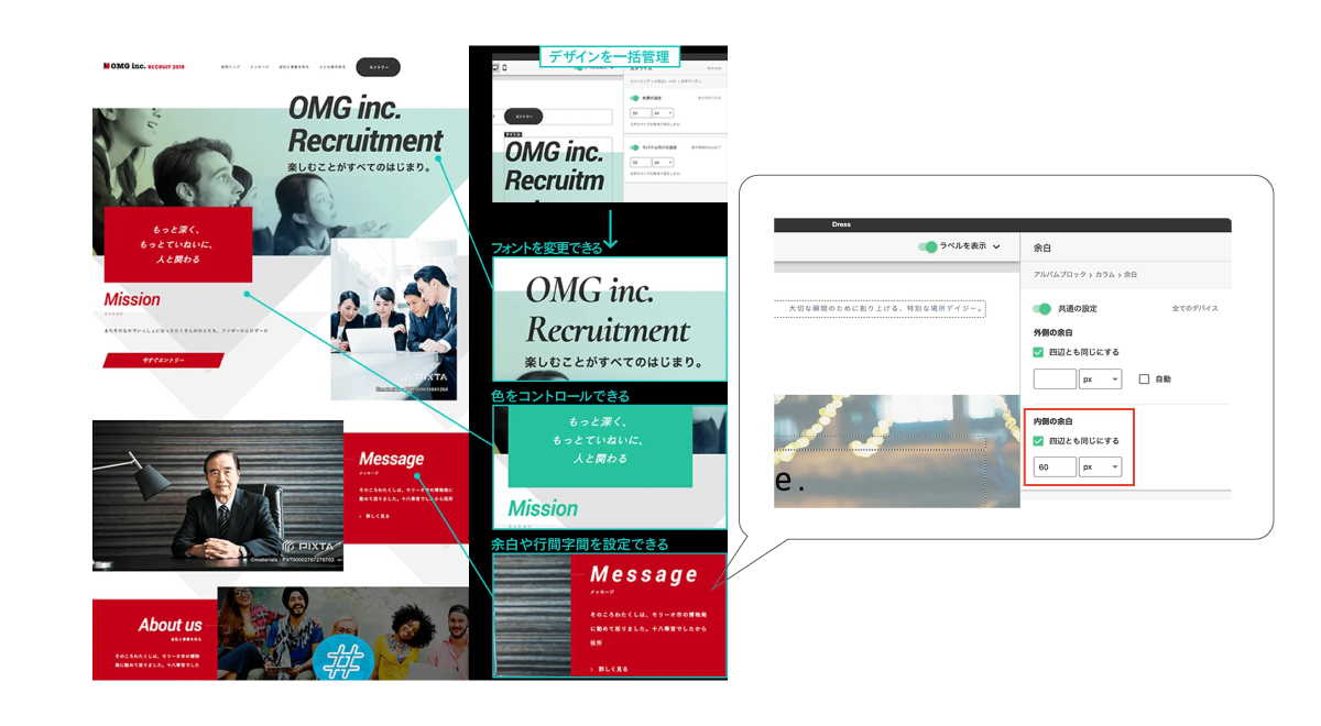 ホームページの配色や装飾を、狙い通りにチェンジできるBiNDupのDress機能