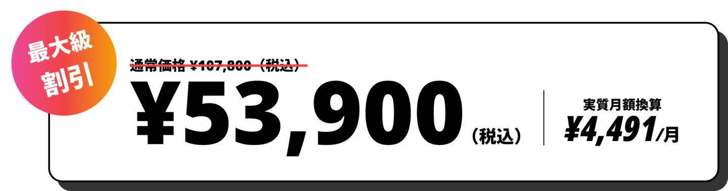 | 割引額 | 107,800円 → 53,900円(税込) |