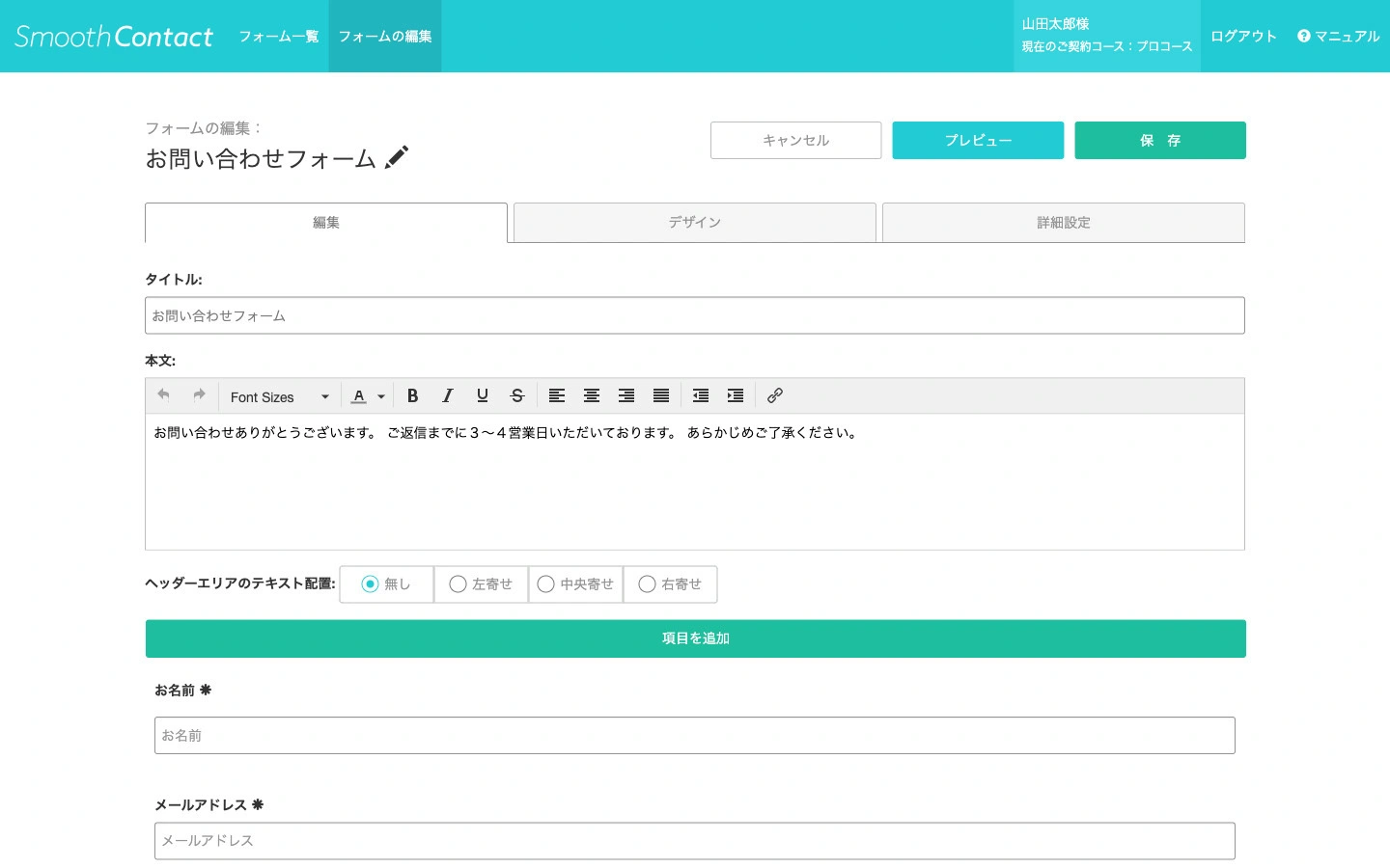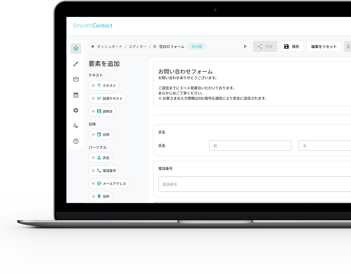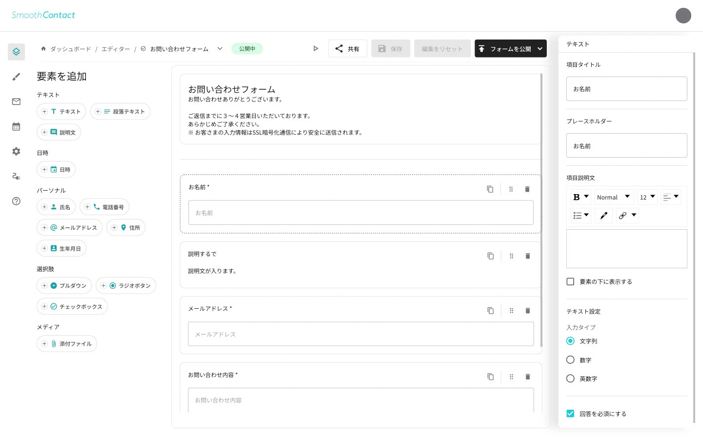 これにより、フォーム作成のスピードが飛躍的に向上し、ストレスフリーな操作環境を提供します。